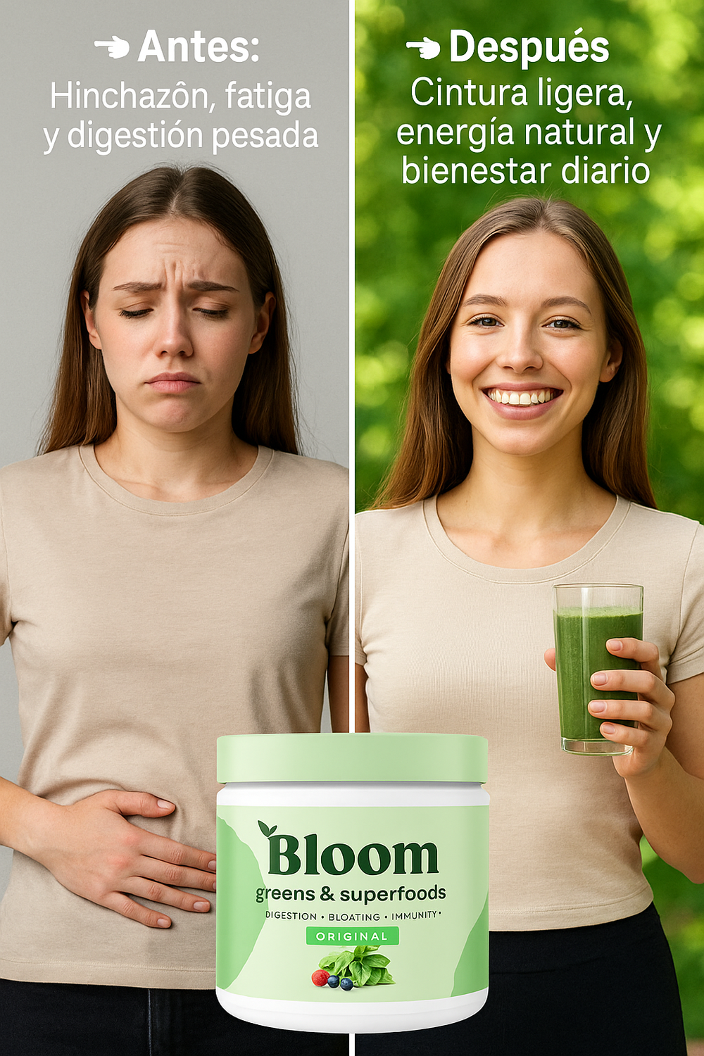 Con Bloom Super Greens, la mezcla de superalimentos que equilibra tu digestión, desintoxica tu cuerpo y potencia tu energía día a día.