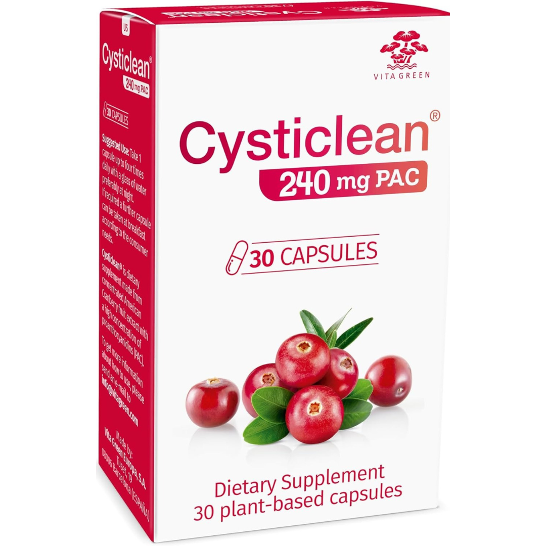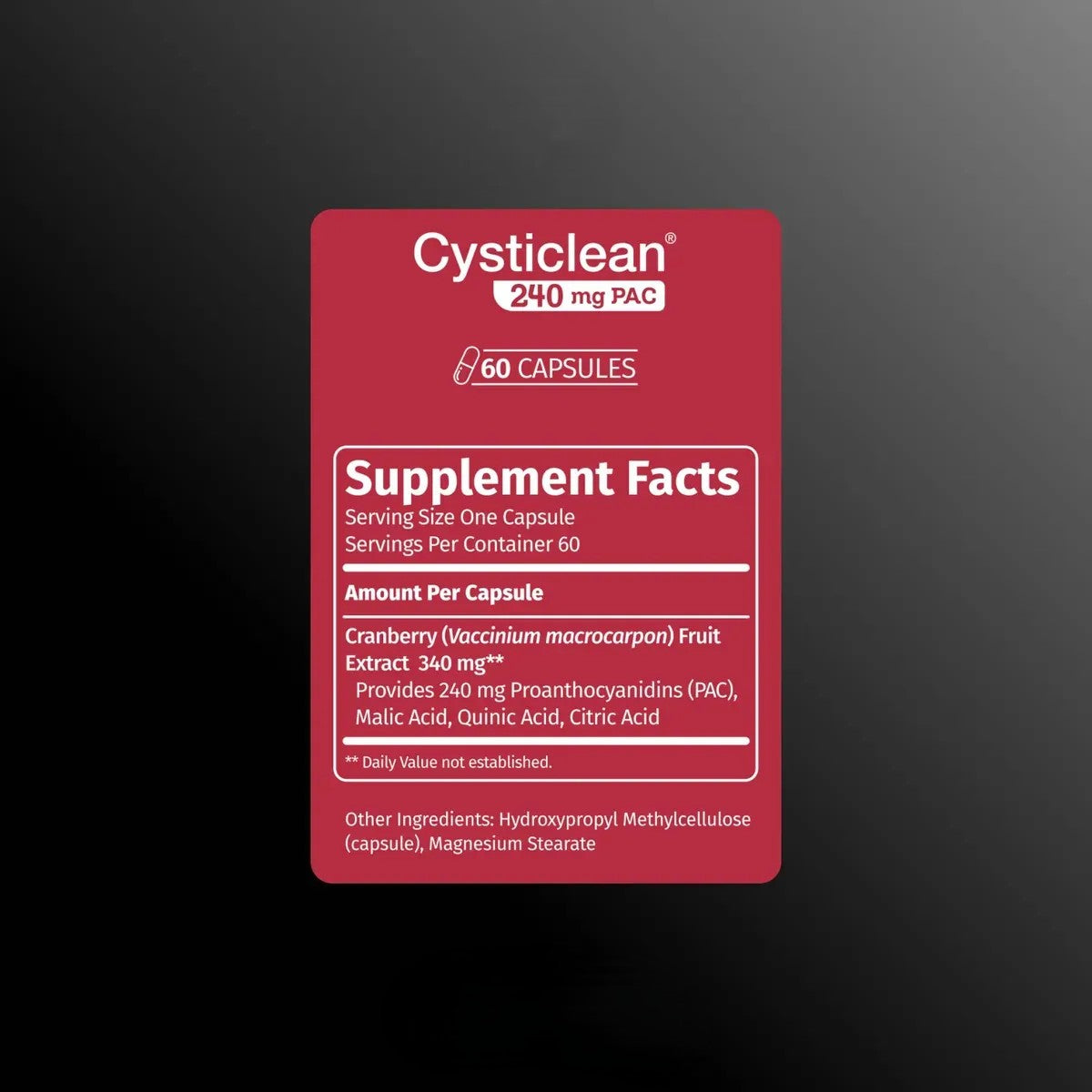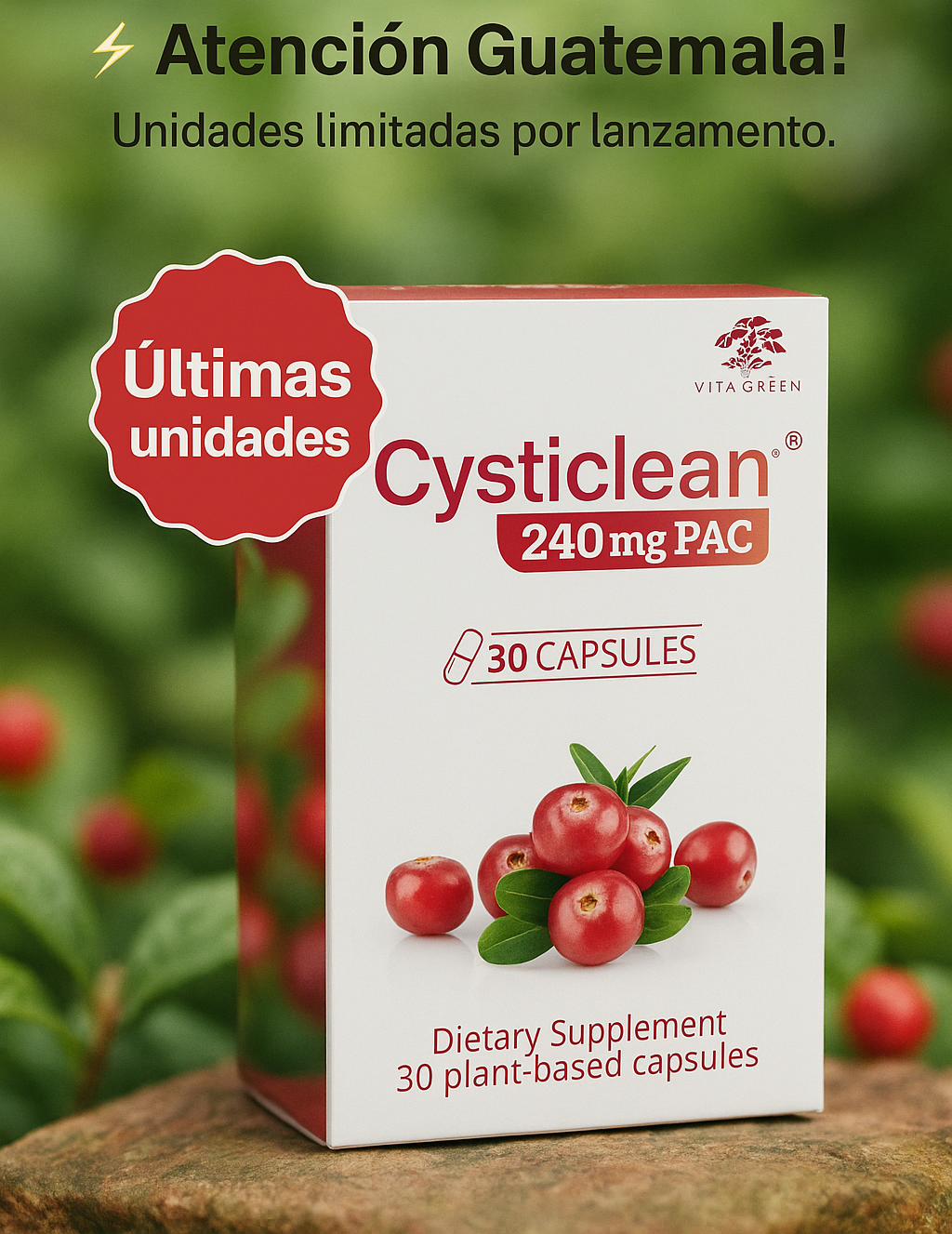 Con Cysticlean, previenes y reduces la recurrencia de las infecciones urinarias gracias a su fórmula 100% natural de arándano rojo americano altamente concentrado.