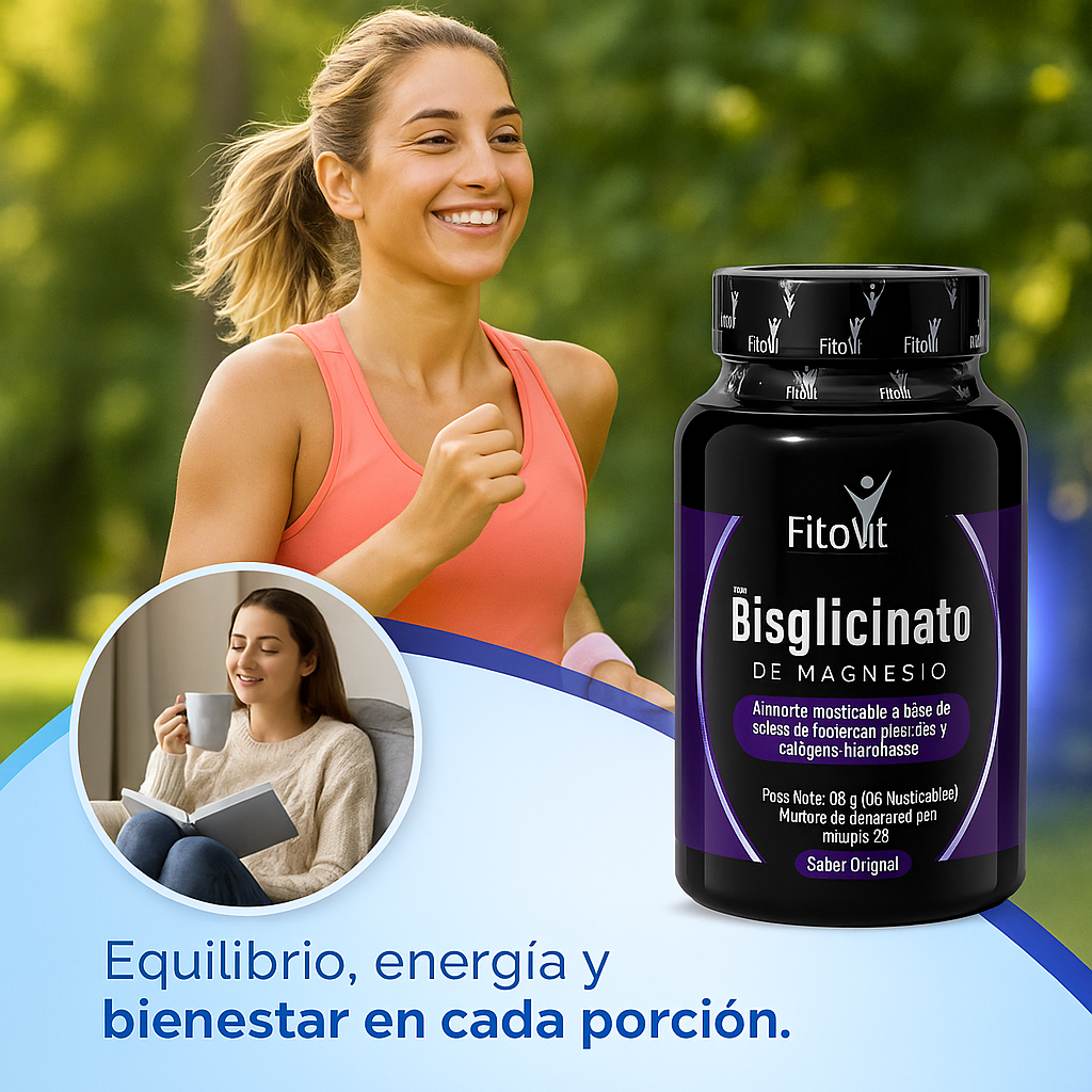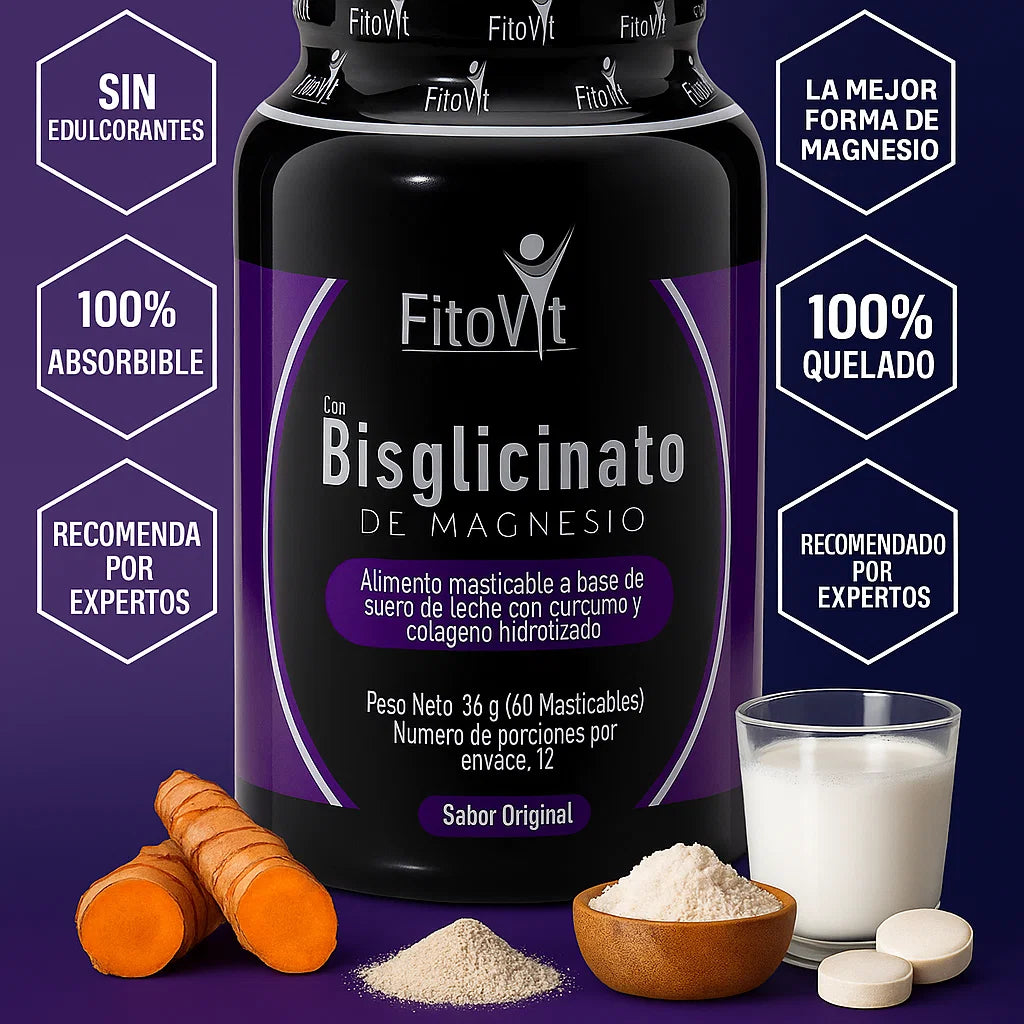 FitoVit combina bisglicinato de magnesio, colágeno y cúrcuma con vitaminas esenciales para: