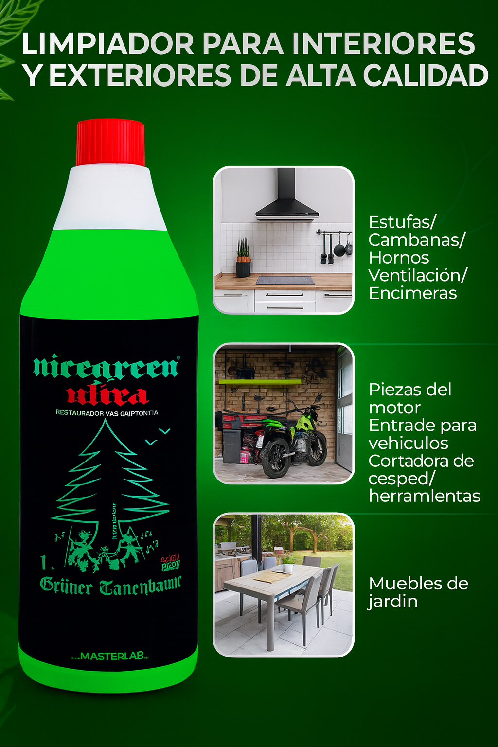 Nicegreen Ultra: el limpiador y desinfectante multiusos que rinde más y reemplaza decenas de productos en tu hogar o negocio.