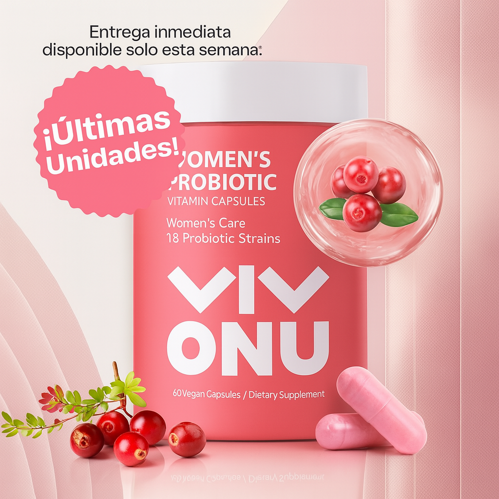 Con 18 cepas + extracto de arándano y Lactobacillus reuteri, este suplemento protege tu flora vaginal, intestinos y defensas. 100% vegano y sin alérgenos.