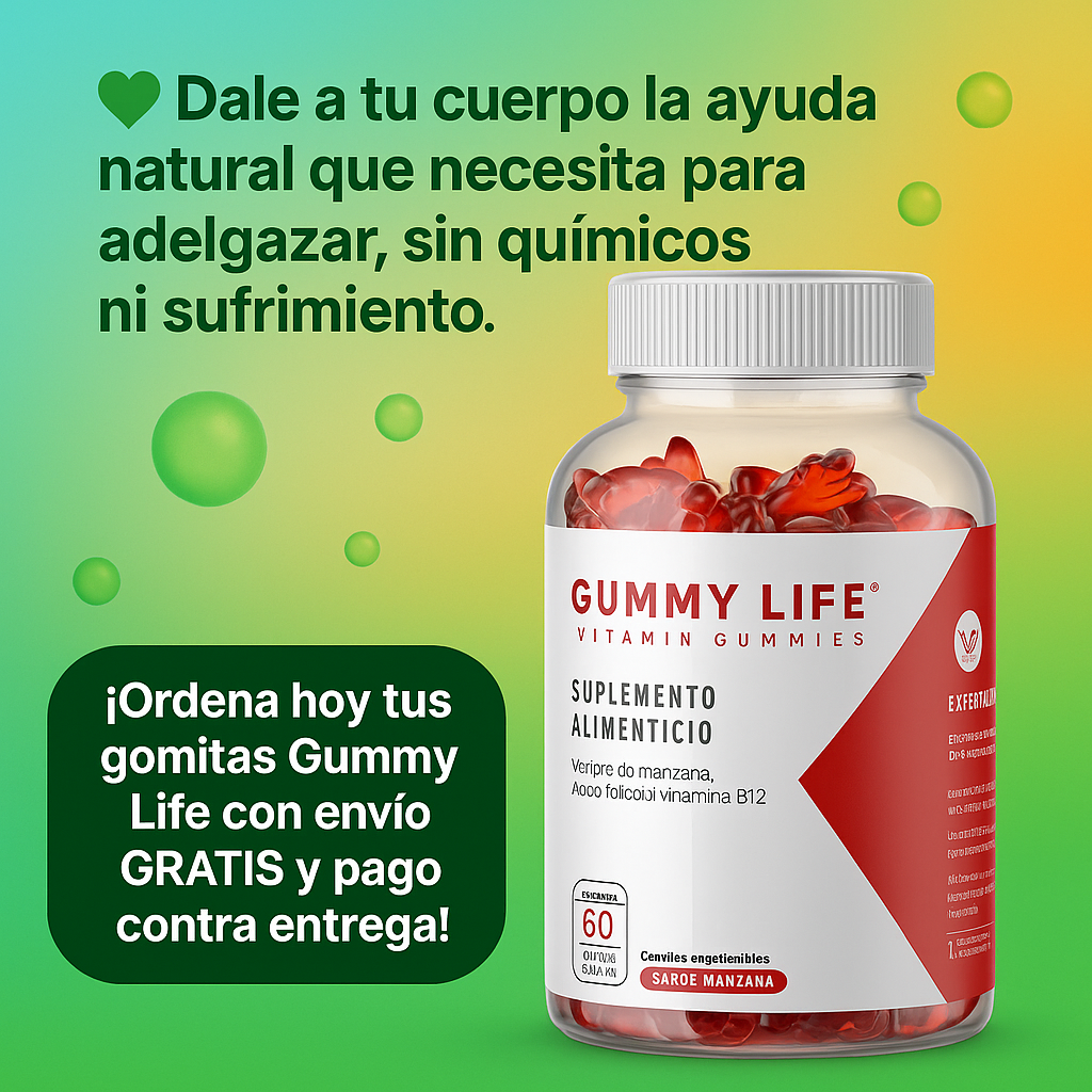 Gummy Life combina el poder del vinagre de manzana con nutrientes clave que activan tu metabolismo, controlan el apetito y te ayudan a reducir esa barriga que tanto te incomoda. Todo esto en deliciosas gomitas naturales.