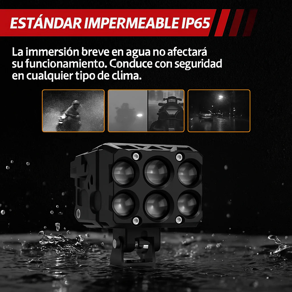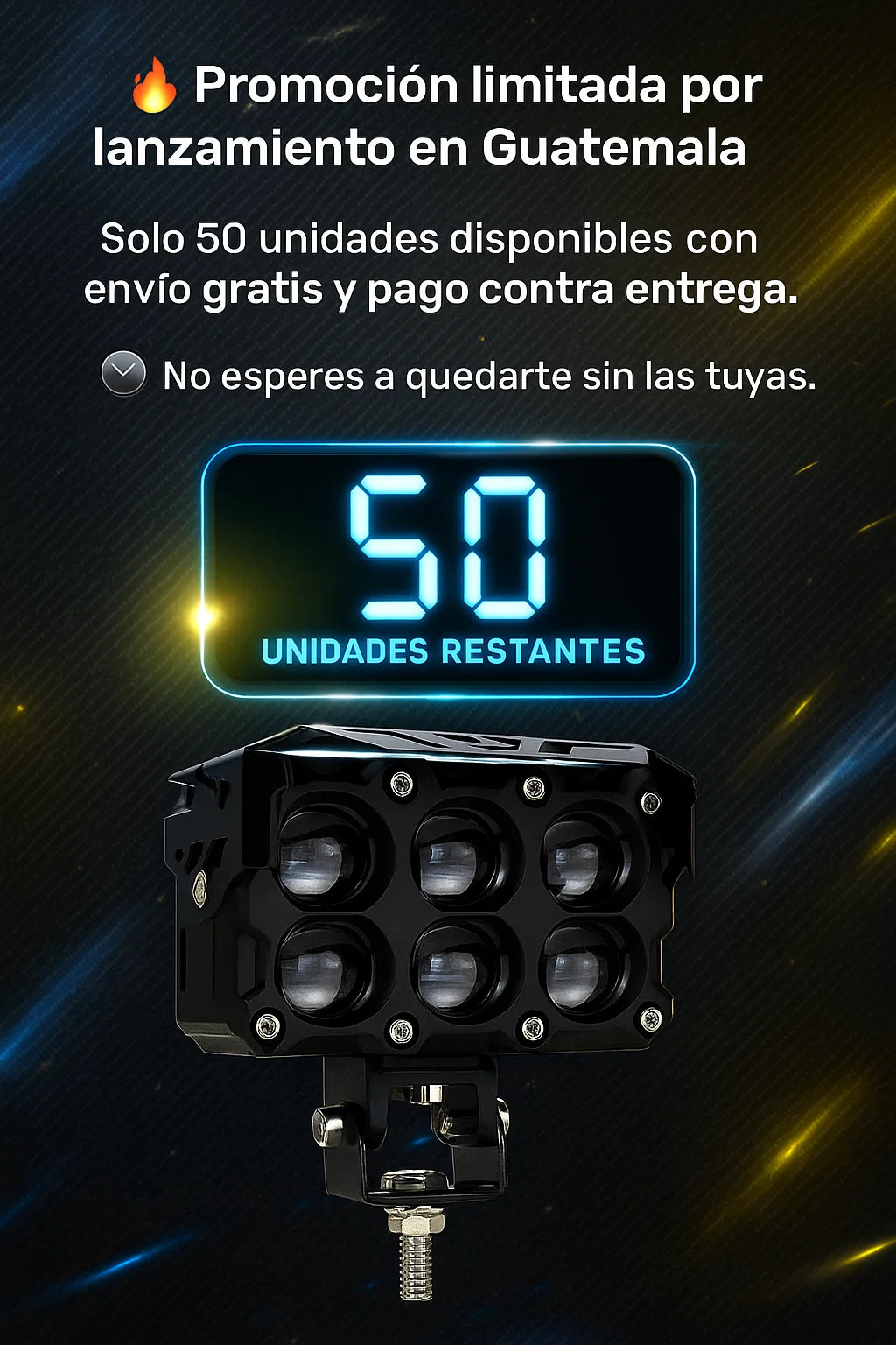 💡 Tecnología tipo lupa que concentra el haz de luz para mayor alcance.