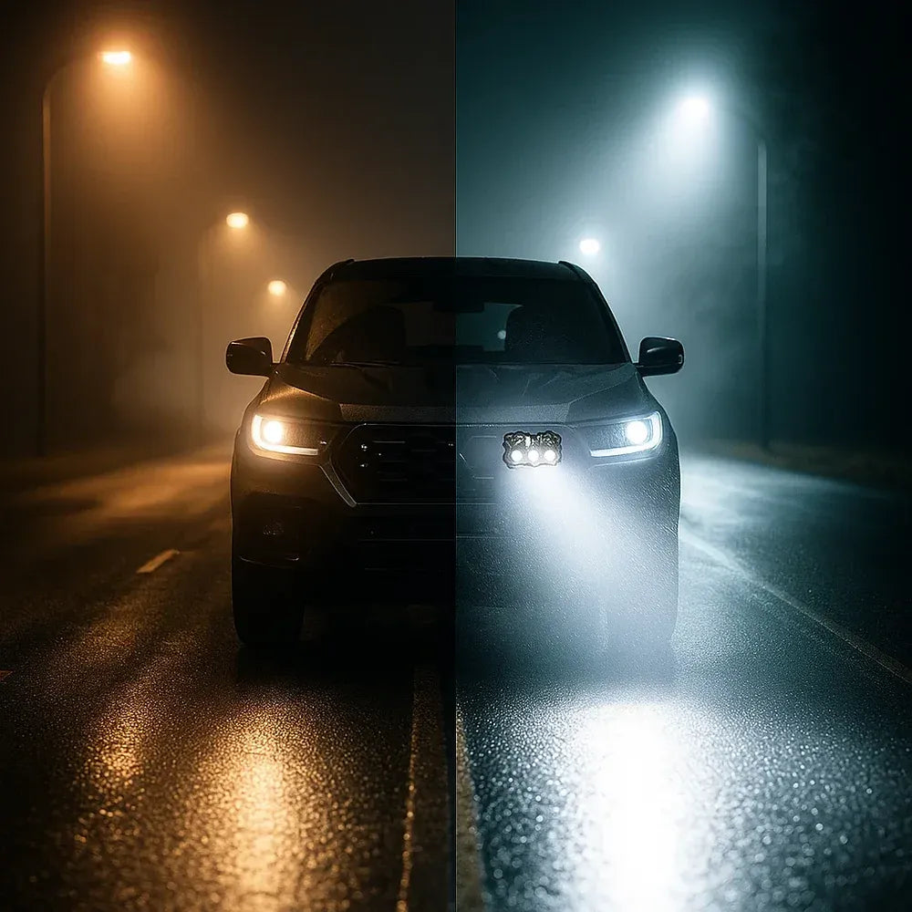 Cambio total. La luz amarilla ayuda mucho con la niebla, se ven brutales en el carro
