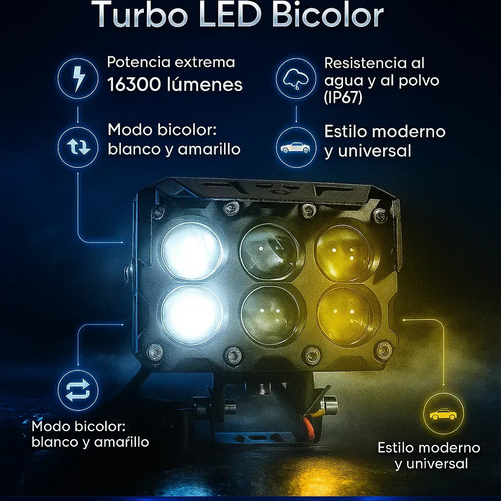 Luces Exploradoras Tipo Lupa Turbo LED Bicolor – visibilidad extrema, diseño moderno y protección total en carretera.