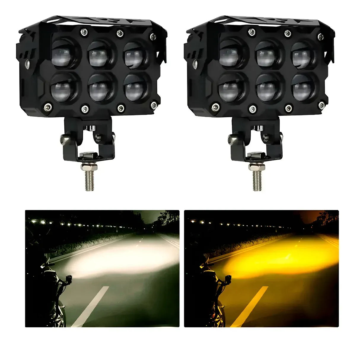 ✨ Iluminación bicolor ultra potente: blanca para carretera, amarilla para niebla.