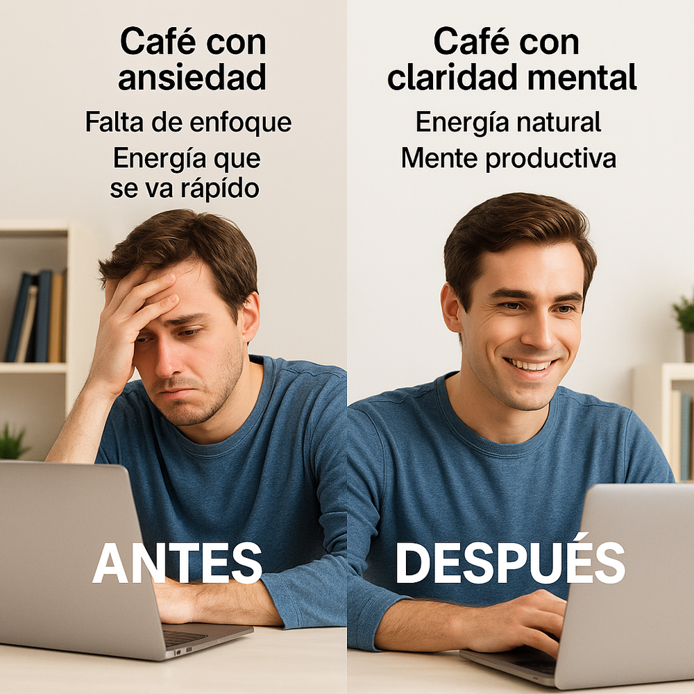 Te despierta… pero luego llega el bajón.Café ácido, nerviosismo, ansiedad, cero enfoque.Tu mente pide algo mejor.