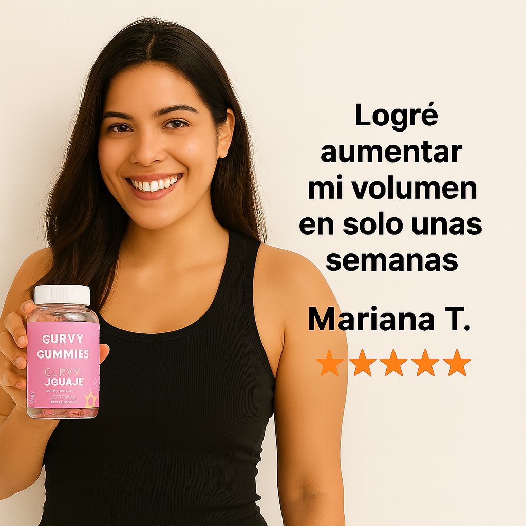 👉 Curvy Gummies están formuladas con ingredientes naturales que apoyan el desarrollo de masa magra, realce de glúteos y reducción de grasa localizada.