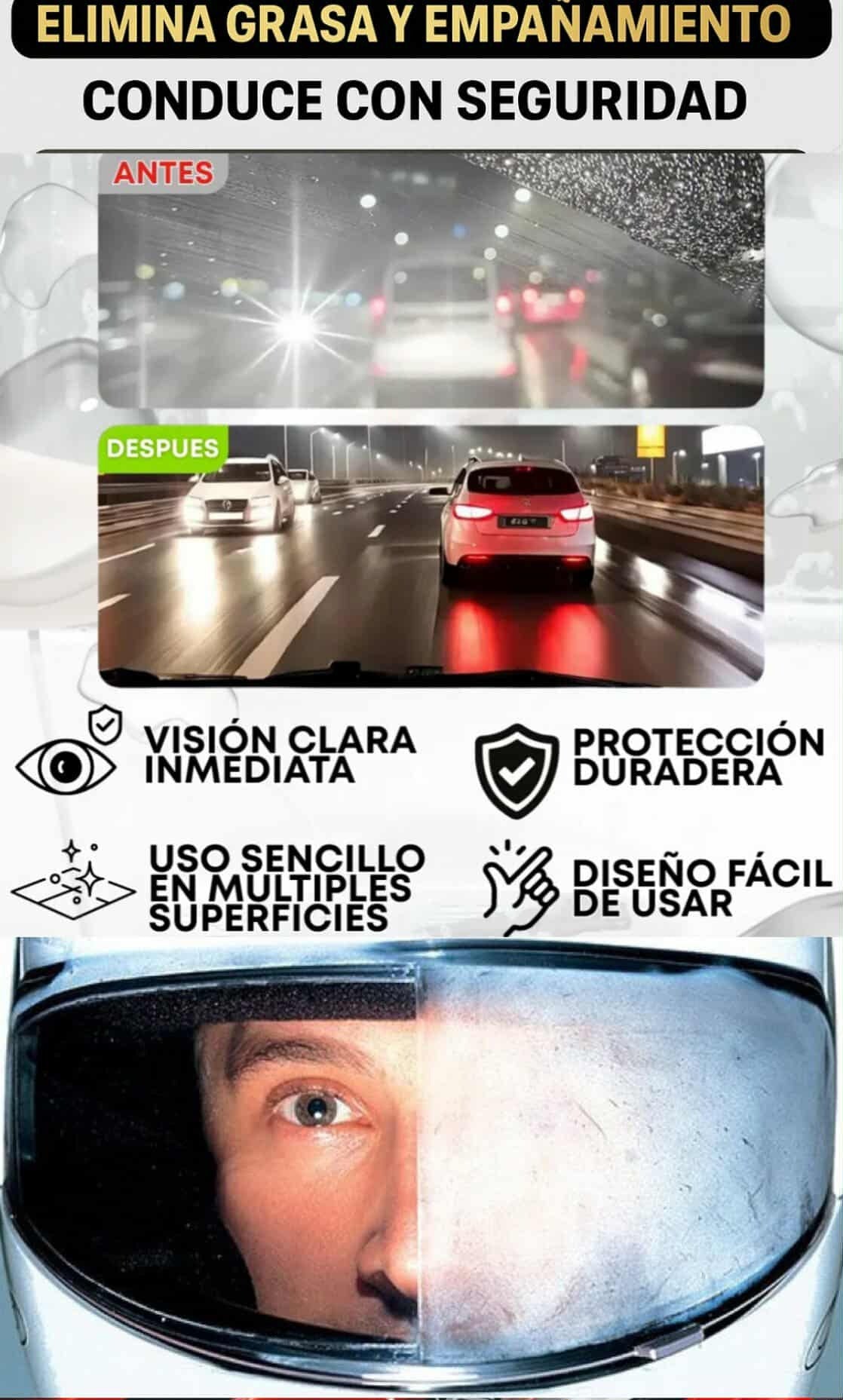 Conduce con claridad total: elimina grasa, manchas y lluvia en segundos.