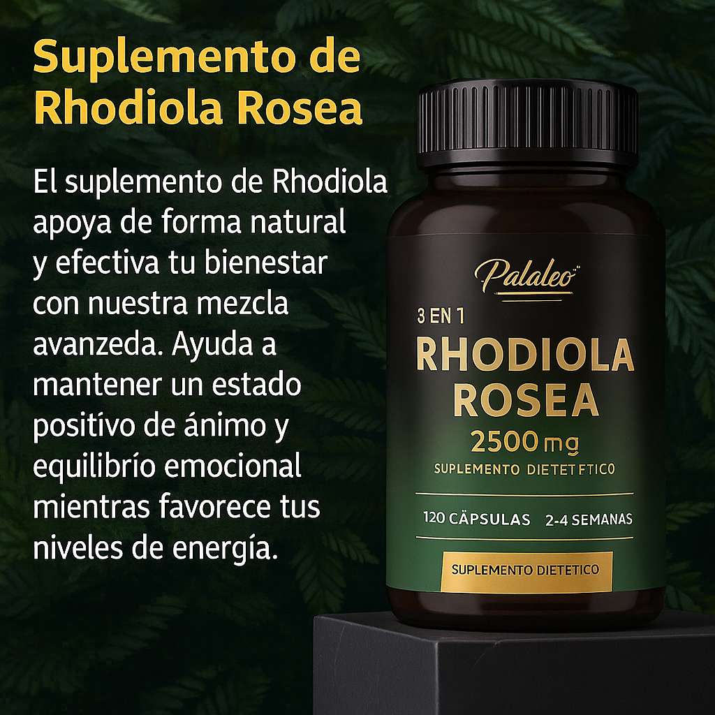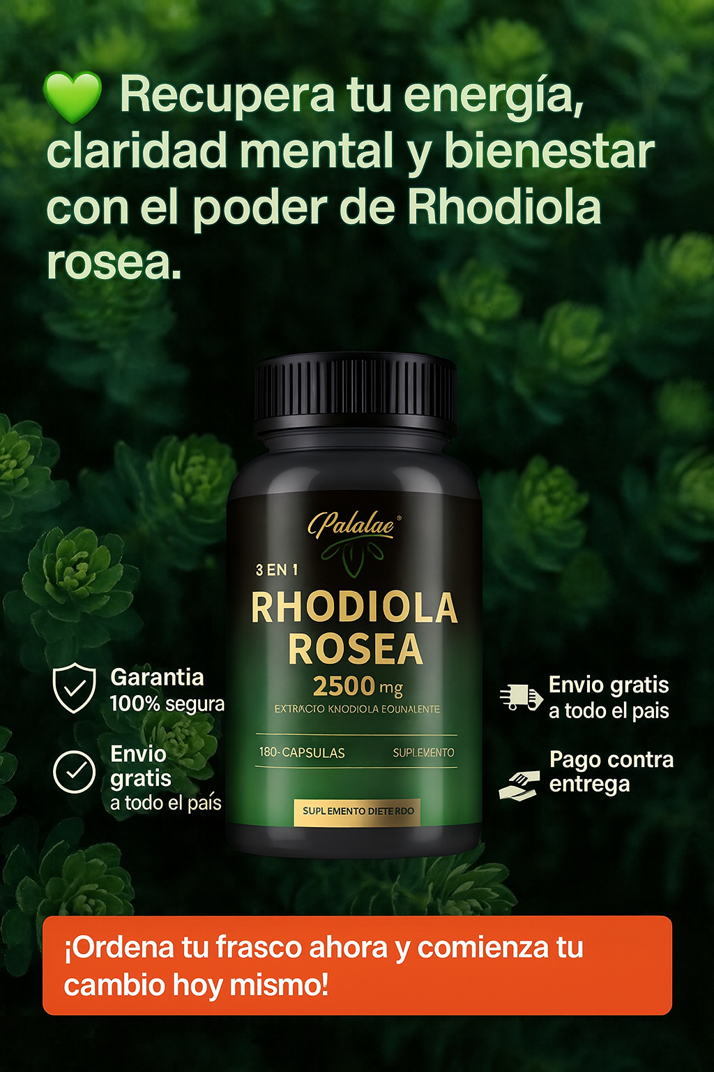 Despídete del cansancio y el estrés. Descubre el poder de la Rhodiola rosea, el adaptógeno que transforma tu día en productividad, enfoque y bienestar.