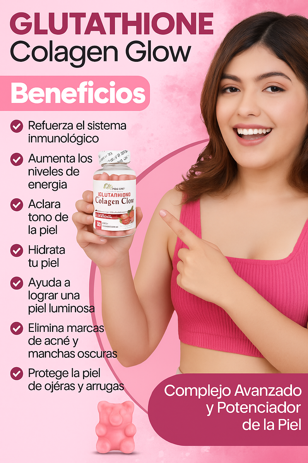 Con su fórmula avanzada de glutatión, colágeno hidrolizado y vitamina C, ayuda a: