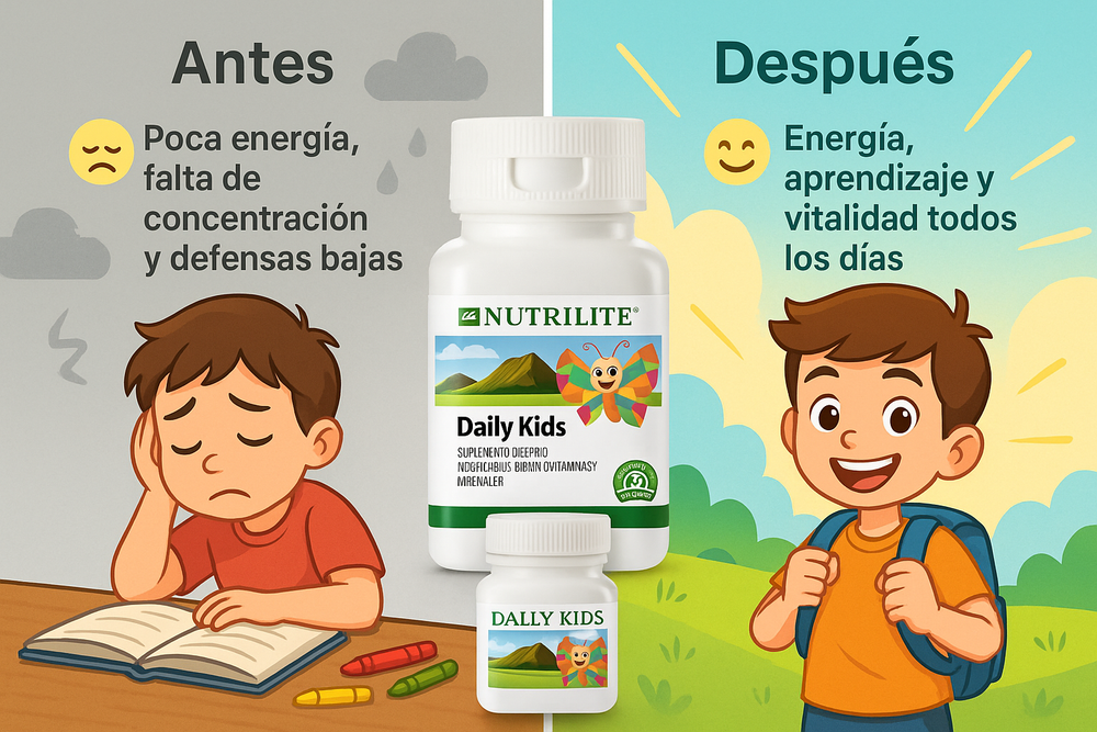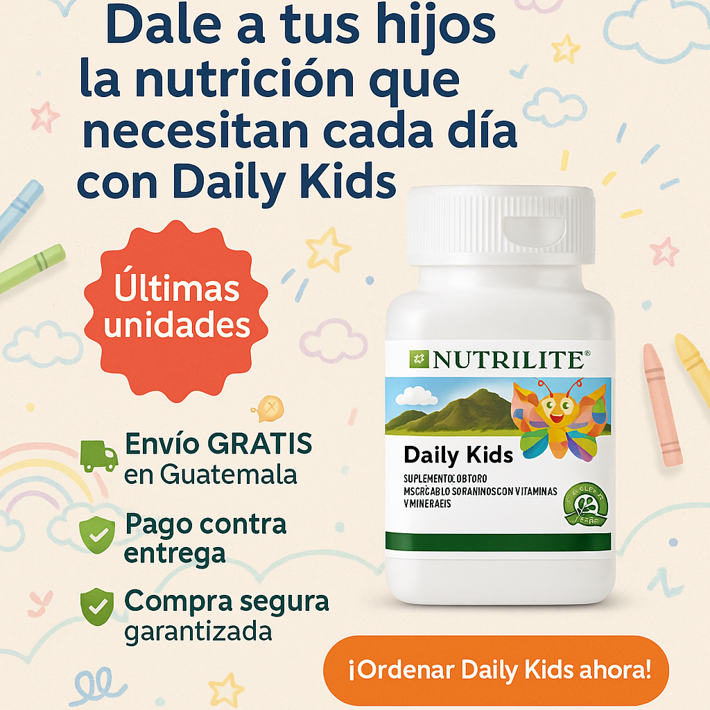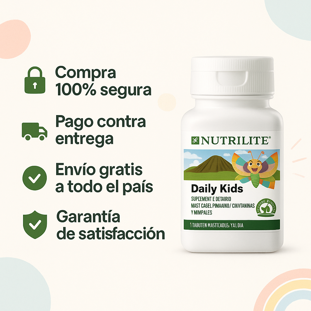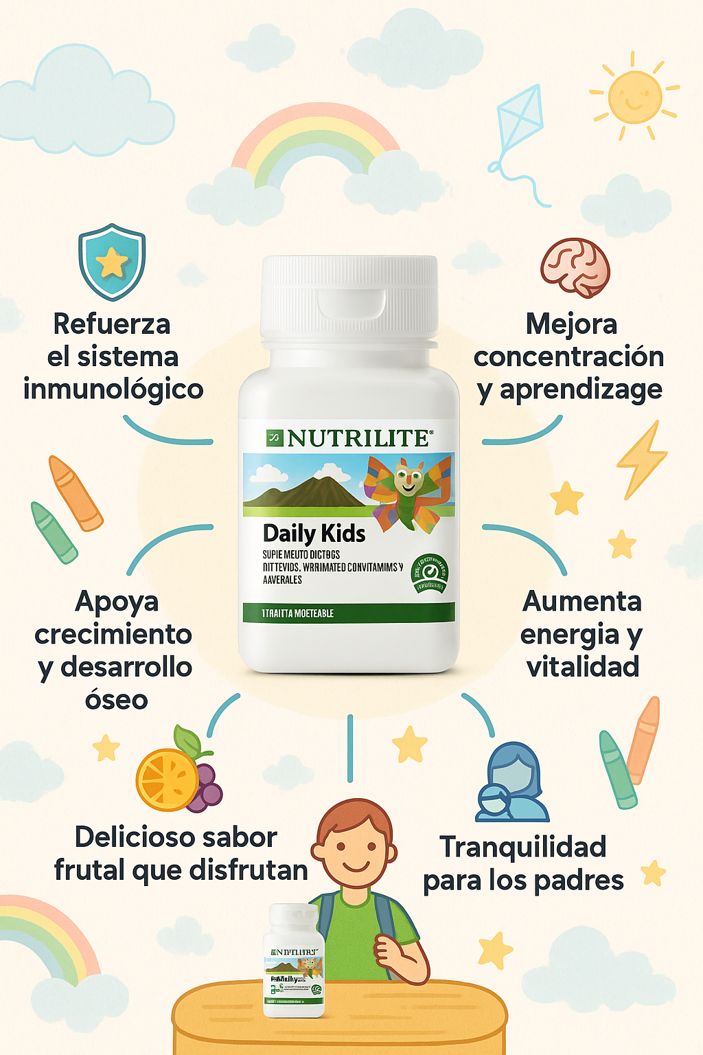 Con Daily Kids aseguras que tu hijo reciba vitaminas y minerales esenciales cada día, de forma práctica y divertida