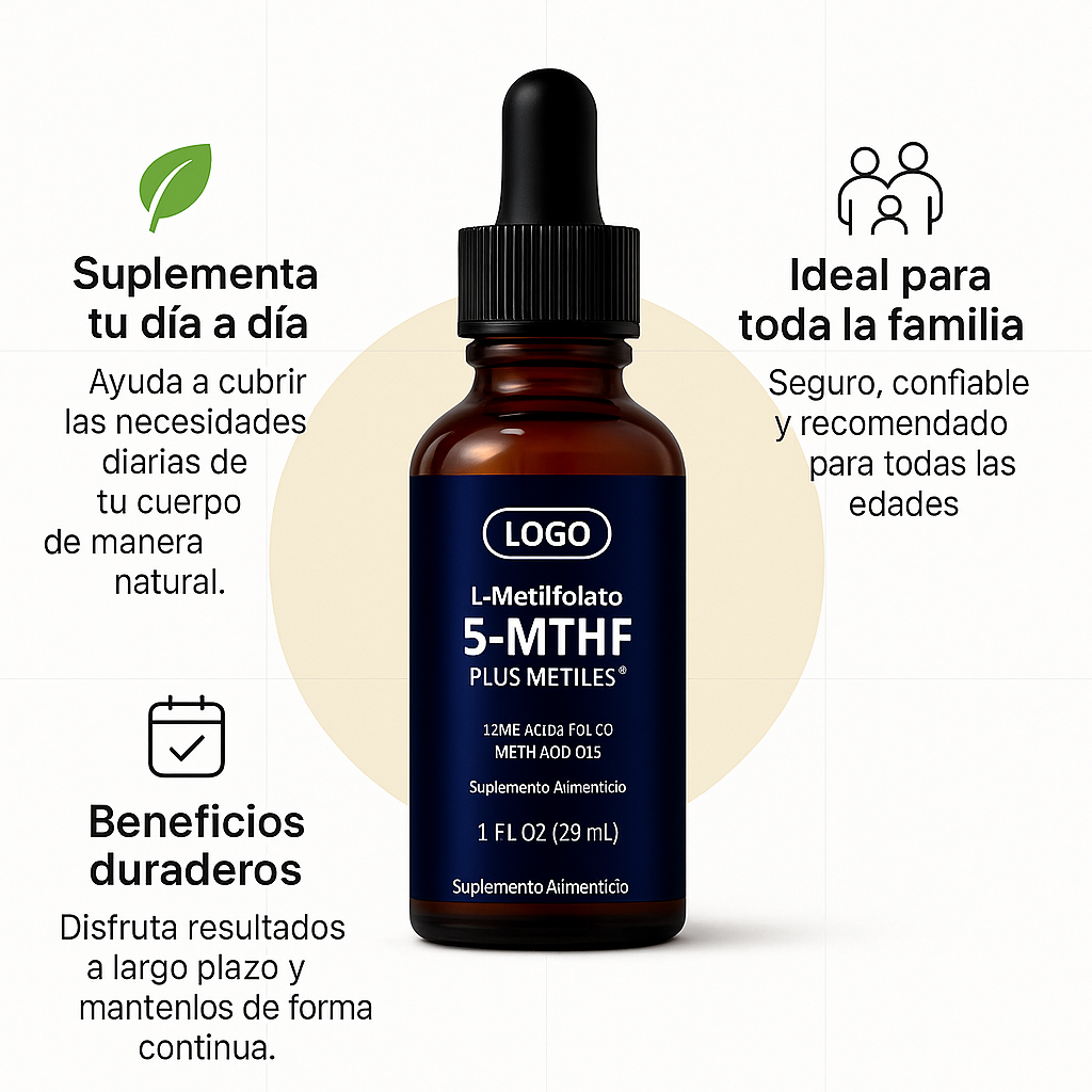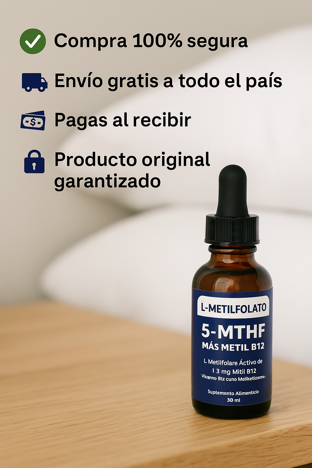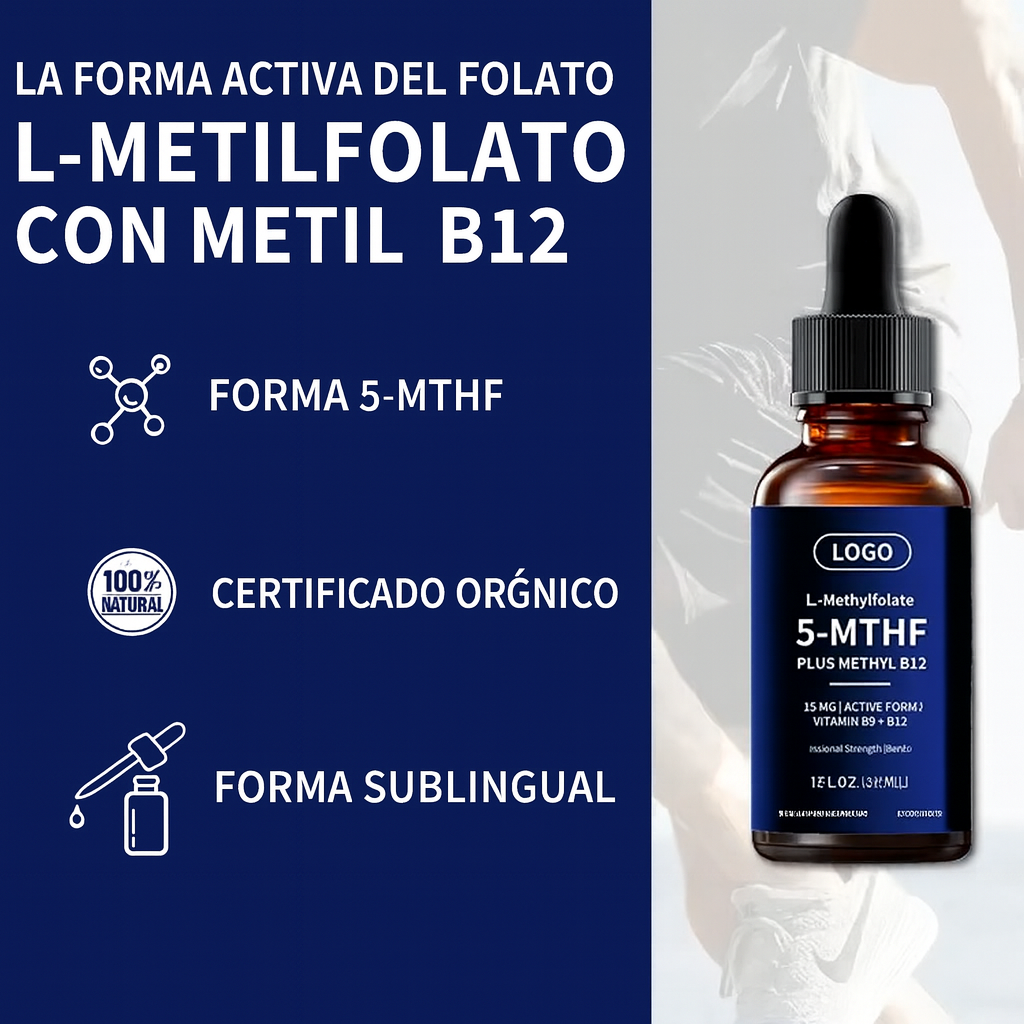 - Contenido neto: 1 fl oz / 30 ml. Ingrediente activo: L-Methylfolate (5-MTHF) + Metilcobalamina (vitamina B12 activa).