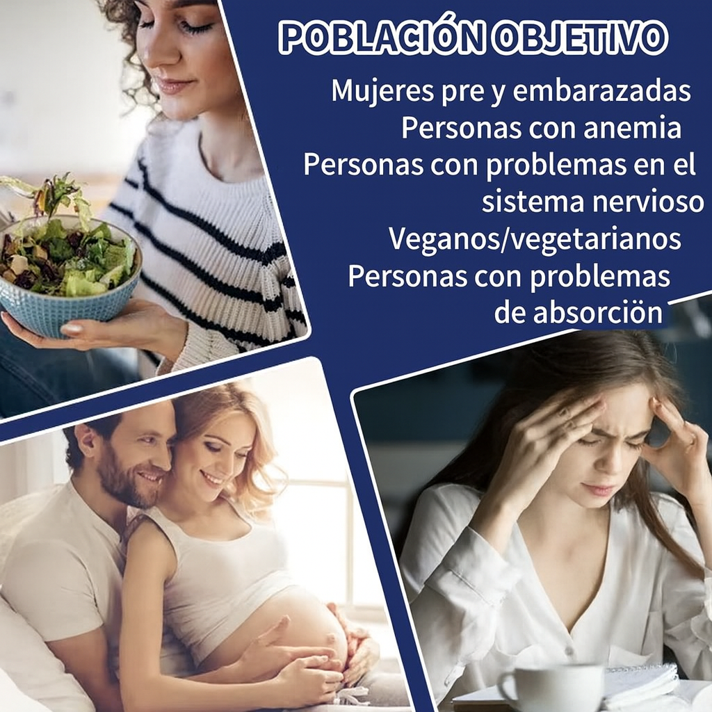El suplemento de Metilfolato (vitamina B9 activa) que tu cuerpo absorbe al instante para: