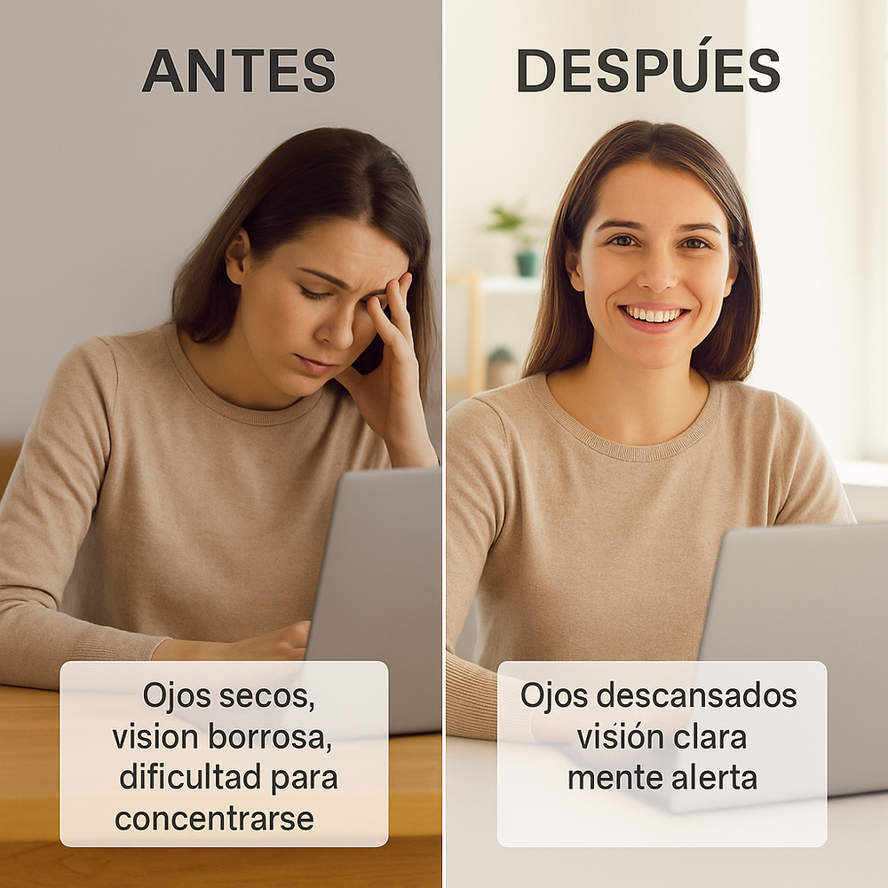 Pasar muchas horas frente a pantallas, el envejecimiento o la mala circulación pueden afectar tus ojos y tu concentración sin que te des cuenta… hasta que es tarde.