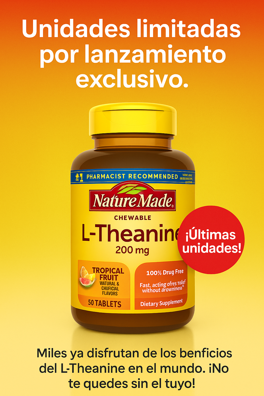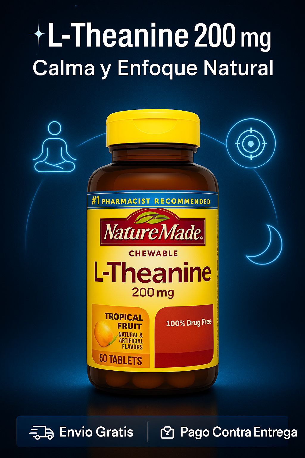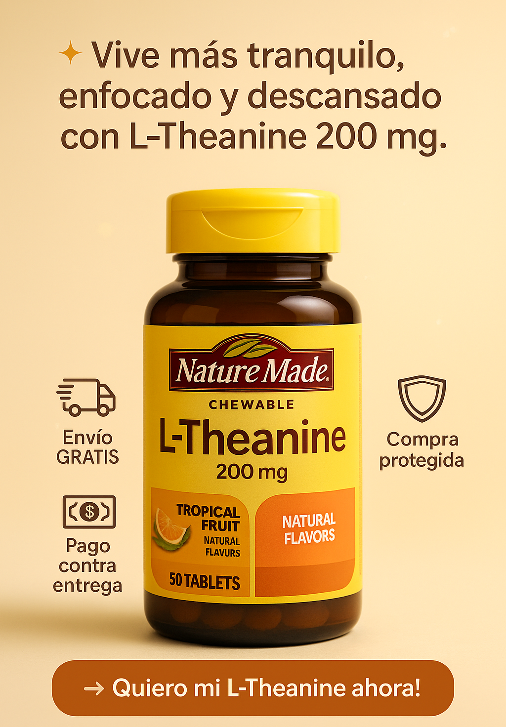 Con L-Theanine 200 mg, controla el estrés, mejora tu concentración y alcanza un descanso reparador sin efectos secundarios.